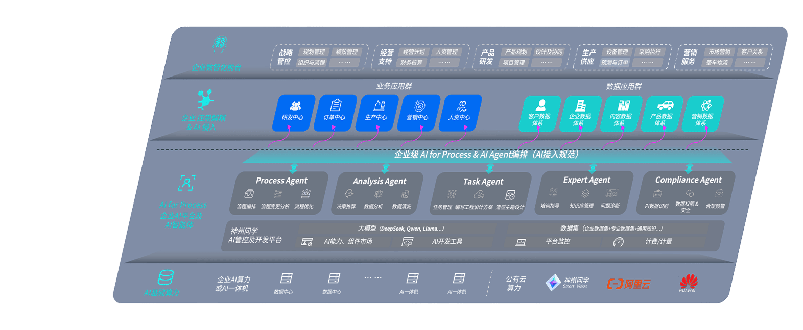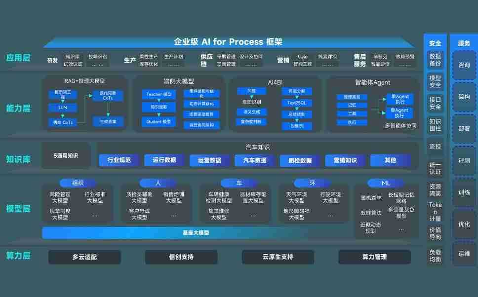 端到端的一站式AI工作空间深度融合了从企业战略规划到日常经营的全流程业务板块,,定向解决车企内部领域多、、部门多、、、、链条长、、场景碎片化等难题,,,支持车企快速构建以AI为核心的生产力写作体系,,,实现任务执行与AI能力的无缝集成与交互